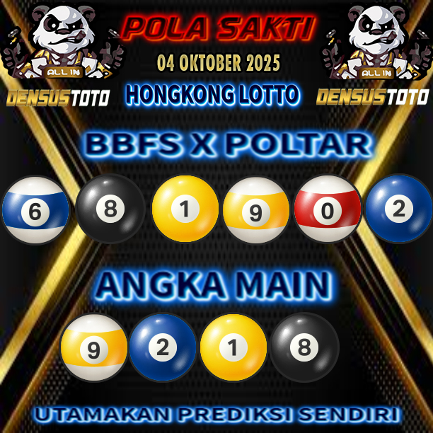 Prediksi DENSUSTOTO menyediakan Syair Togel Hongkong resmi yang dapat anda saksikan dalam situs judi togel online ini. Setiap pemain judi togel online yang tidak memandang dan mengenal syair togel hongkong pastilah kurang mujur buat mendapati angka keluaran togel terjitu. Lantaran itu sekarang situs judi togel online DENSUS TOTO sekarang akan memberikan anda bocoran bagaimana caranya mendapati nomor keluaran prediksi hongkong dari syair togel hk terjitu. Sekarang anda cuma perlu dan mengenal code syair hongkong ini merupakan prediksi hongkong yang dituang terdapat sifat code syair. Maka serius tidak bertanya-tanya jikalau sejumlah penggemar togel begitu menyintai prediksi syair togel ini. Buat prediksi syair hongkong dapat dipakai buat bahan ketidaksamaan mencari angka jitu yang bisa keluar pada hari ini. Karenanya berhati-hatilah selalu pada setiap terdapat dipicu di situ dapat anda angka bermain 2D, 3D dan 4D.