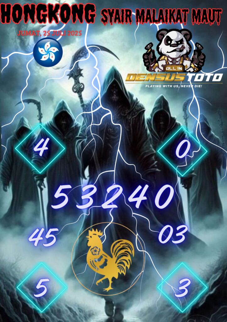 Prediksi DENSUSTOTO menyediakan Syair Togel Hongkong resmi yang dapat anda saksikan dalam situs judi togel online ini. Setiap pemain judi togel online yang tidak memandang dan mengenal syair togel hongkong pastilah kurang mujur buat mendapati angka keluaran togel terjitu. Lantaran itu sekarang situs judi togel online DENSUS TOTO sekarang akan memberikan anda bocoran bagaimana caranya mendapati nomor keluaran prediksi hongkong dari syair togel hk terjitu. Sekarang anda cuma perlu dan mengenal code syair hongkong ini merupakan prediksi hongkong yang dituang terdapat sifat code syair. Maka serius tidak bertanya-tanya jikalau sejumlah penggemar togel begitu menyintai prediksi syair togel ini. Buat prediksi syair hongkong dapat dipakai buat bahan ketidaksamaan mencari angka jitu yang bisa keluar pada hari ini. Karenanya berhati-hatilah selalu pada setiap terdapat dipicu di situ dapat anda angka bermain 2D, 3D dan 4D.