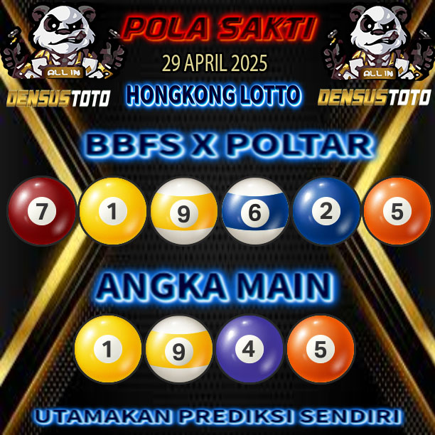 Prediksi DENSUSTOTO menyediakan Syair Togel Hongkong resmi yang dapat anda saksikan dalam situs judi togel online ini. Setiap pemain judi togel online yang tidak memandang dan mengenal syair togel hongkong pastilah kurang mujur buat mendapati angka keluaran togel terjitu. Lantaran itu sekarang situs judi togel online DENSUS TOTO sekarang akan memberikan anda bocoran bagaimana caranya mendapati nomor keluaran prediksi hongkong dari syair togel hk terjitu. Sekarang anda cuma perlu dan mengenal code syair hongkong ini merupakan prediksi hongkong yang dituang terdapat sifat code syair. Maka serius tidak bertanya-tanya jikalau sejumlah penggemar togel begitu menyintai prediksi syair togel ini. Buat prediksi syair hongkong dapat dipakai buat bahan ketidaksamaan mencari angka jitu yang bisa keluar pada hari ini. Karenanya berhati-hatilah selalu pada setiap terdapat dipicu di situ dapat anda angka bermain 2D, 3D dan 4D.