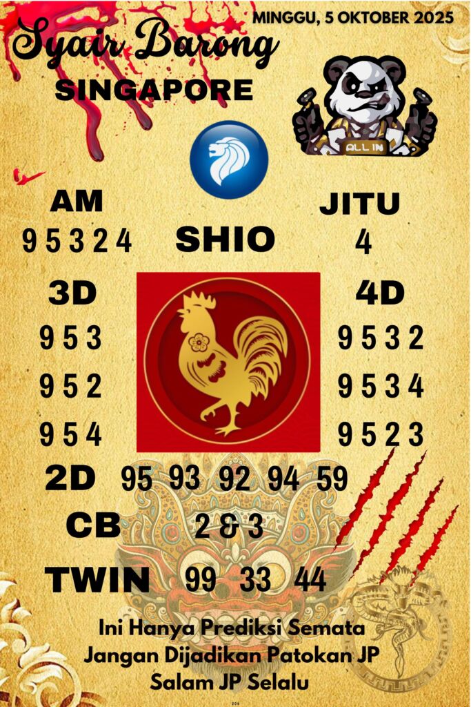 Prediksi DENSUSTOTO menyediakan Syair Togel Singapore resmi yang dapat anda saksikan dalam situs judi togel online ini. Setiap pemain judi togel online yang tidak memandang dan mengenal syair togel singapore pastilah kurang mujur buat mendapati angka keluaran togel terjitu. Lantaran itu sekarang situs judi togel online DENSUS TOTO sekarang akan memberikan anda bocoran bagaimana caranya mendapati nomor keluaran prediksi singapore dari syair togel sgp terjitu. Sekarang anda cuma perlu dan mengenal code syair singapore ini merupakan prediksi singapore yang dituang terdapat sifat code syair. Maka serius tidak bertanya-tanya jikalau sejumlah penggemar togel begitu menyintai prediksi syair togel ini. Buat prediksi syair singapore dapat dipakai buat bahan ketidaksamaan mencari angka jitu yang bisa keluar pada hari ini. Karenanya berhati-hatilah selalu pada setiap terdapat dipicu di situ dapat anda angka bermain 2D, 3D dan 4D