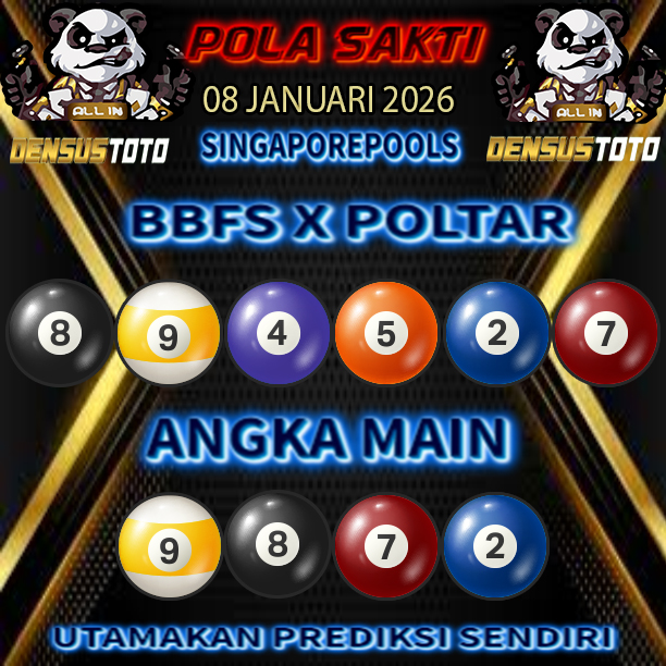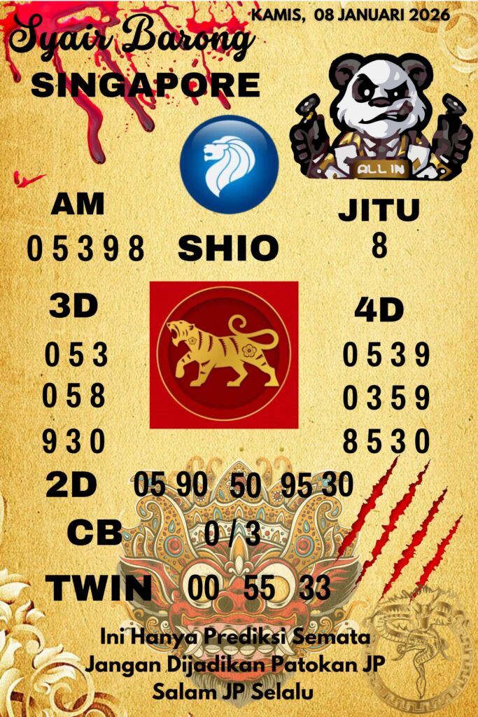Prediksi DENSUSTOTO menyediakan Syair Togel Singapore resmi yang dapat anda saksikan dalam situs judi togel online ini. Setiap pemain judi togel online yang tidak memandang dan mengenal syair togel singapore pastilah kurang mujur buat mendapati angka keluaran togel terjitu. Lantaran itu sekarang situs judi togel online DENSUS TOTO sekarang akan memberikan anda bocoran bagaimana caranya mendapati nomor keluaran prediksi singapore dari syair togel sgp terjitu. Sekarang anda cuma perlu dan mengenal code syair singapore ini merupakan prediksi singapore yang dituang terdapat sifat code syair. Maka serius tidak bertanya-tanya jikalau sejumlah penggemar togel begitu menyintai prediksi syair togel ini. Buat prediksi syair singapore dapat dipakai buat bahan ketidaksamaan mencari angka jitu yang bisa keluar pada hari ini. Karenanya berhati-hatilah selalu pada setiap terdapat dipicu di situ dapat anda angka bermain 2D, 3D dan 4D