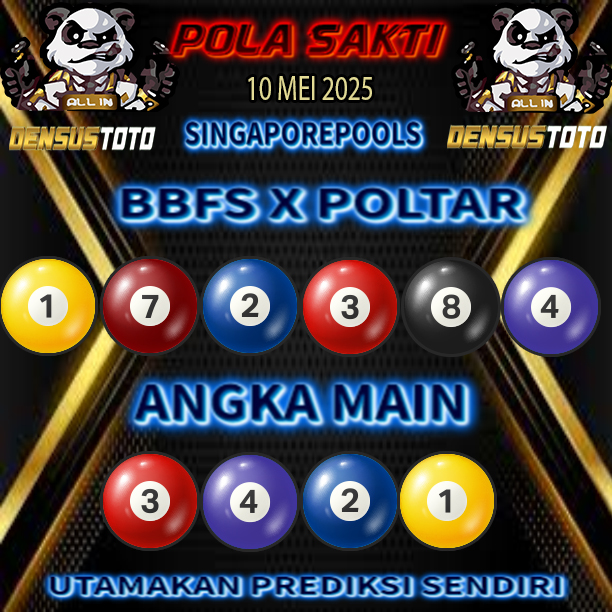 Prediksi DENSUSTOTO menyediakan Syair Togel Singapore resmi yang dapat anda saksikan dalam situs judi togel online ini. Setiap pemain judi togel online yang tidak memandang dan mengenal syair togel singapore pastilah kurang mujur buat mendapati angka keluaran togel terjitu. Lantaran itu sekarang situs judi togel online DENSUS TOTO sekarang akan memberikan anda bocoran bagaimana caranya mendapati nomor keluaran prediksi singapore dari syair togel sgp terjitu. Sekarang anda cuma perlu dan mengenal code syair singapore ini merupakan prediksi singapore yang dituang terdapat sifat code syair. Maka serius tidak bertanya-tanya jikalau sejumlah penggemar togel begitu menyintai prediksi syair togel ini. Buat prediksi syair singapore dapat dipakai buat bahan ketidaksamaan mencari angka jitu yang bisa keluar pada hari ini. Karenanya berhati-hatilah selalu pada setiap terdapat dipicu di situ dapat anda angka bermain 2D, 3D dan 4D.