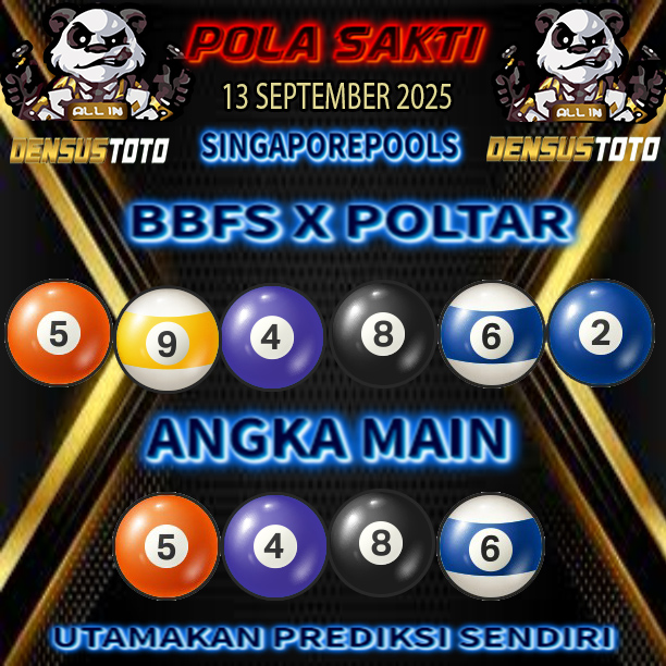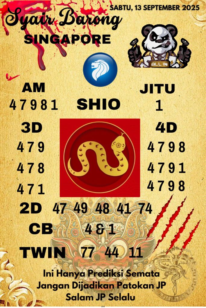 Prediksi DENSUSTOTO menyediakan Syair Togel Singapore resmi yang dapat anda saksikan dalam situs judi togel online ini. Setiap pemain judi togel online yang tidak memandang dan mengenal syair togel singapore pastilah kurang mujur buat mendapati angka keluaran togel terjitu. Lantaran itu sekarang situs judi togel online DENSUS TOTO sekarang akan memberikan anda bocoran bagaimana caranya mendapati nomor keluaran prediksi singapore dari syair togel sgp terjitu. Sekarang anda cuma perlu dan mengenal code syair singapore ini merupakan prediksi singapore yang dituang terdapat sifat code syair. Maka serius tidak bertanya-tanya jikalau sejumlah penggemar togel begitu menyintai prediksi syair togel ini. Buat prediksi syair singapore dapat dipakai buat bahan ketidaksamaan mencari angka jitu yang bisa keluar pada hari ini. Karenanya berhati-hatilah selalu pada setiap terdapat dipicu di situ dapat anda angka bermain 2D, 3D dan 4D