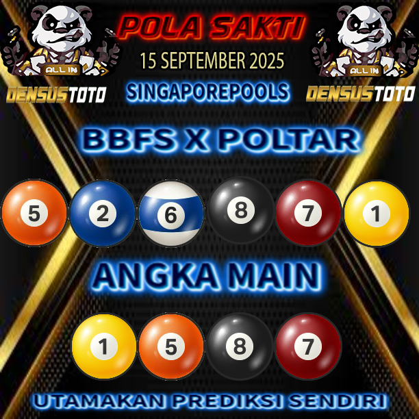 Prediksi DENSUSTOTO menyediakan Syair Togel Singapore resmi yang dapat anda saksikan dalam situs judi togel online ini. Setiap pemain judi togel online yang tidak memandang dan mengenal syair togel singapore pastilah kurang mujur buat mendapati angka keluaran togel terjitu. Lantaran itu sekarang situs judi togel online DENSUS TOTO sekarang akan memberikan anda bocoran bagaimana caranya mendapati nomor keluaran prediksi singapore dari syair togel sgp terjitu. Sekarang anda cuma perlu dan mengenal code syair singapore ini merupakan prediksi singapore yang dituang terdapat sifat code syair. Maka serius tidak bertanya-tanya jikalau sejumlah penggemar togel begitu menyintai prediksi syair togel ini. Buat prediksi syair singapore dapat dipakai buat bahan ketidaksamaan mencari angka jitu yang bisa keluar pada hari ini. Karenanya berhati-hatilah selalu pada setiap terdapat dipicu di situ dapat anda angka bermain 2D, 3D dan 4D