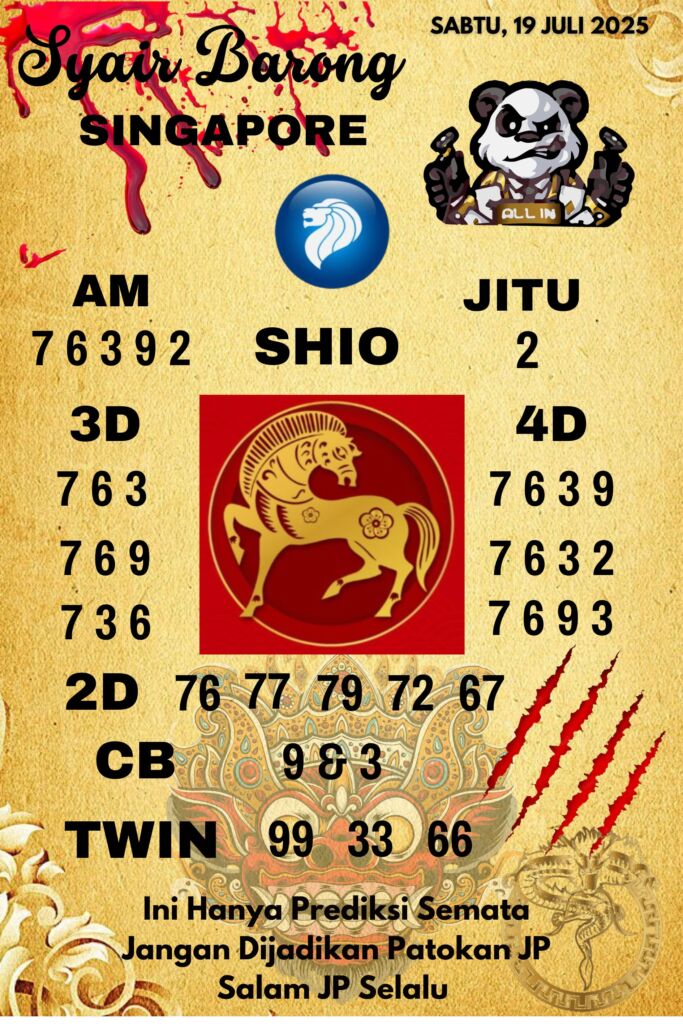 Prediksi DENSUSTOTO menyediakan Syair Togel Singapore resmi yang dapat anda saksikan dalam situs judi togel online ini. Setiap pemain judi togel online yang tidak memandang dan mengenal syair togel singapore pastilah kurang mujur buat mendapati angka keluaran togel terjitu. Lantaran itu sekarang situs judi togel online DENSUS TOTO sekarang akan memberikan anda bocoran bagaimana caranya mendapati nomor keluaran prediksi singapore dari syair togel sgp terjitu. Sekarang anda cuma perlu dan mengenal code syair singapore ini merupakan prediksi singapore yang dituang terdapat sifat code syair. Maka serius tidak bertanya-tanya jikalau sejumlah penggemar togel begitu menyintai prediksi syair togel ini. Buat prediksi syair singapore dapat dipakai buat bahan ketidaksamaan mencari angka jitu yang bisa keluar pada hari ini. Karenanya berhati-hatilah selalu pada setiap terdapat dipicu di situ dapat anda angka bermain 2D, 3D dan 4D.