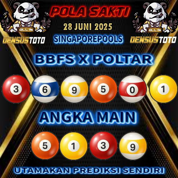Prediksi DENSUSTOTO menyediakan Syair Togel Singapore resmi yang dapat anda saksikan dalam situs judi togel online ini. Setiap pemain judi togel online yang tidak memandang dan mengenal syair togel singapore pastilah kurang mujur buat mendapati angka keluaran togel terjitu. Lantaran itu sekarang situs judi togel online DENSUS TOTO sekarang akan memberikan anda bocoran bagaimana caranya mendapati nomor keluaran prediksi singapore dari syair togel sgp terjitu. Sekarang anda cuma perlu dan mengenal code syair singapore ini merupakan prediksi singapore yang dituang terdapat sifat code syair. Maka serius tidak bertanya-tanya jikalau sejumlah penggemar togel begitu menyintai prediksi syair togel ini. Buat prediksi syair singapore dapat dipakai buat bahan ketidaksamaan mencari angka jitu yang bisa keluar pada hari ini. Karenanya berhati-hatilah selalu pada setiap terdapat dipicu di situ dapat anda angka bermain 2D, 3D dan 4D.