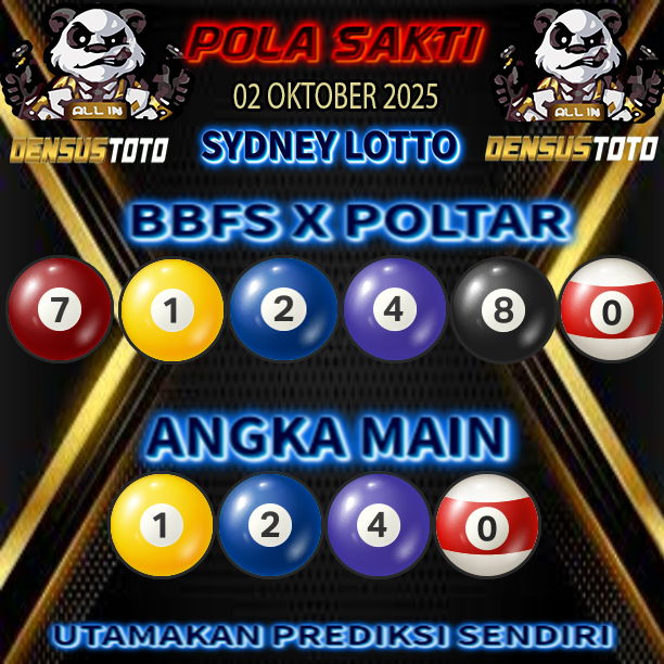 Prediksi DENSUSTOTO menyediakan Syair Togel Sydney resmi yang dapat anda saksikan dalam situs judi togel online ini. Setiap pemain judi togel online yang tidak memandang dan mengenal syair togel sydney pastilah kurang mujur buat mendapati angka keluaran togel terjitu. Lantaran itu sekarang situs judi togel online DENSUS TOTO sekarang akan memberikan anda bocoran bagaimana caranya mendapati nomor keluaran prediksi sydney dari syair togel sgp terjitu. Sekarang anda cuma perlu dan mengenal code syair sydney ini merupakan prediksi sydney yang dituang terdapat sifat code syair. Maka serius tidak bertanya-tanya jikalau sejumlah penggemar togel begitu menyintai prediksi syair togel ini. Buat prediksi syair sydney dapat dipakai buat bahan ketidaksamaan mencari angka jitu yang bisa keluar pada hari ini. Karenanya berhati-hatilah selalu pada setiap terdapat dipicu di situ dapat anda angka bermain 2D, 3D dan 4
