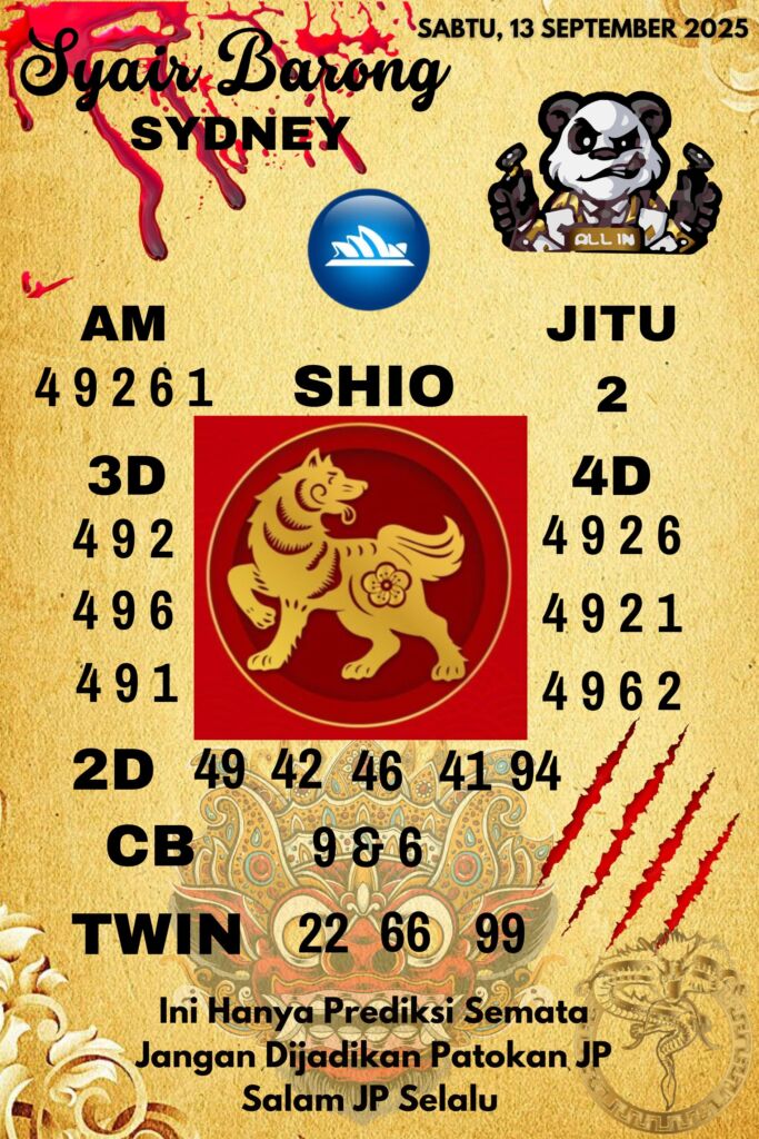 Prediksi DENSUSTOTO menyediakan Syair Togel Sydney resmi yang dapat anda saksikan dalam situs judi togel online ini. Setiap pemain judi togel online yang tidak memandang dan mengenal syair togel sydney pastilah kurang mujur buat mendapati angka keluaran togel terjitu. Lantaran itu sekarang situs judi togel online DENSUS TOTO sekarang akan memberikan anda bocoran bagaimana caranya mendapati nomor keluaran prediksi sydney dari syair togel sgp terjitu. Sekarang anda cuma perlu dan mengenal code syair sydney ini merupakan prediksi sydney yang dituang terdapat sifat code syair. Maka serius tidak bertanya-tanya jikalau sejumlah penggemar togel begitu menyintai prediksi syair togel ini. Buat prediksi syair sydney dapat dipakai buat bahan ketidaksamaan mencari angka jitu yang bisa keluar pada hari ini. Karenanya berhati-hatilah selalu pada setiap terdapat dipicu di situ dapat anda angka bermain 2D, 3D dan 4D.