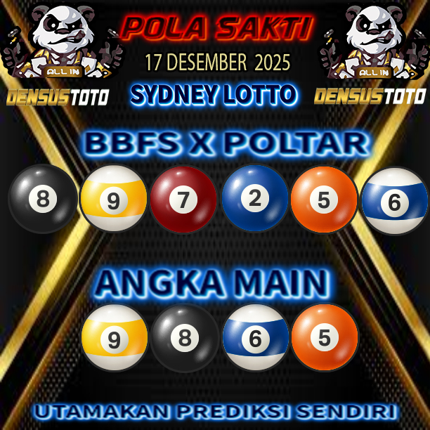Prediksi DENSUSTOTO menyediakan Syair Togel Sydney resmi yang dapat anda saksikan dalam situs judi togel online ini. Setiap pemain judi togel online yang tidak memandang dan mengenal syair togel sydney pastilah kurang mujur buat mendapati angka keluaran togel terjitu. Lantaran itu sekarang situs judi togel online DENSUS TOTO sekarang akan memberikan anda bocoran bagaimana caranya mendapati nomor keluaran prediksi sydney dari syair togel sgp terjitu. Sekarang anda cuma perlu dan mengenal code syair sydney ini merupakan prediksi sydney yang dituang terdapat sifat code syair. Maka serius tidak bertanya-tanya jikalau sejumlah penggemar togel begitu menyintai prediksi syair togel ini. Buat prediksi syair sydney dapat dipakai buat bahan ketidaksamaan mencari angka jitu yang bisa keluar pada hari ini. Karenanya berhati-hatilah selalu pada setiap terdapat dipicu di situ dapat anda angka bermain 2D, 3D dan 4D