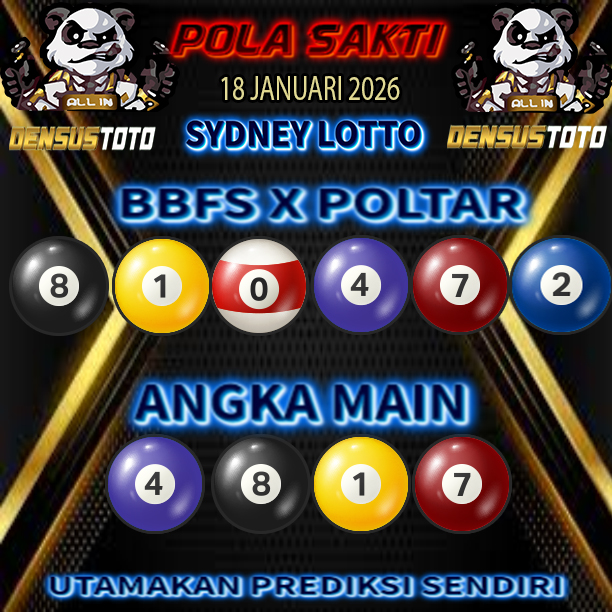 Prediksi DENSUSTOTO menyediakan Syair Togel Sydney resmi yang dapat anda saksikan dalam situs judi togel online ini. Setiap pemain judi togel online yang tidak memandang dan mengenal syair togel sydney pastilah kurang mujur buat mendapati angka keluaran togel terjitu. Lantaran itu sekarang situs judi togel online DENSUS TOTO sekarang akan memberikan anda bocoran bagaimana caranya mendapati nomor keluaran prediksi sydney dari syair togel sgp terjitu. Sekarang anda cuma perlu dan mengenal code syair sydney ini merupakan prediksi sydney yang dituang terdapat sifat code syair. Maka serius tidak bertanya-tanya jikalau sejumlah penggemar togel begitu menyintai prediksi syair togel ini. Buat prediksi syair sydney dapat dipakai buat bahan ketidaksamaan mencari angka jitu yang bisa keluar pada hari ini. Karenanya berhati-hatilah selalu pada setiap terdapat dipicu di situ dapat anda angka bermain 2D, 3D dan 4D
