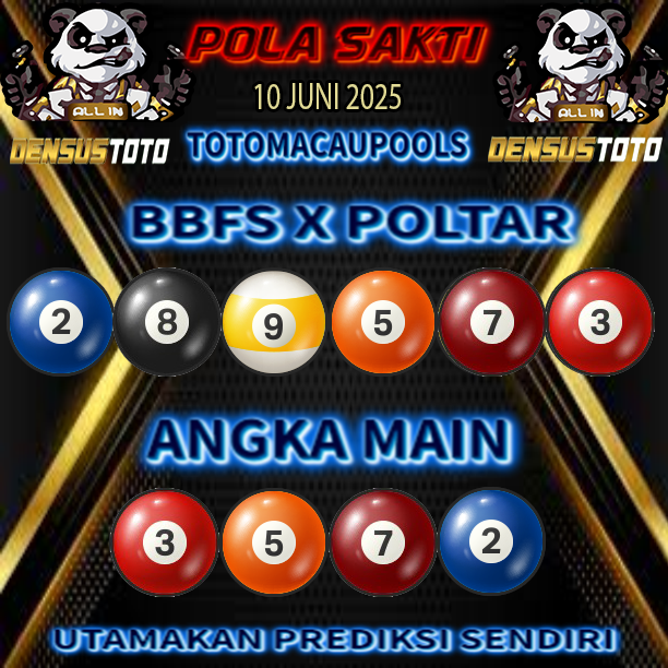 Prediksi DENSUSTOTO menyediakan Syair Togel Toto Macau resmi yang dapat anda saksikan dalam situs judi togel online ini. Setiap pemain judi togel online yang tidak memandang dan mengenal syair togel Toto Macau pastilah kurang mujur buat mendapati angka keluaran togel terjitu. Lantaran itu sekarang situs judi togel online DENSUS TOTO sekarang akan memberikan anda bocoran bagaimana caranya mendapati nomor keluaran prediksi Toto Macau dari syair togel sgp terjitu. Sekarang anda cuma perlu dan mengenal code syair Toto Macau ini merupakan prediksi Toto Macau yang dituang terdapat sifat code syair. Maka serius tidak bertanya-tanya jikalau sejumlah penggemar togel begitu menyintai prediksi syair togel ini. Buat prediksi syair Toto Macau dapat dipakai buat bahan ketidaksamaan mencari angka jitu yang bisa keluar pada hari ini. Karenanya berhati-hatilah selalu pada setiap terdapat dipicu di situ dapat anda angka bermain 2D, 3D dan 4D.