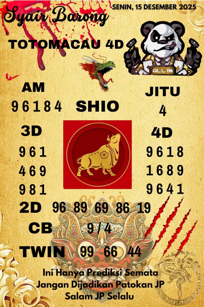 Prediksi DENSUSTOTO menyediakan Syair Togel Toto Macau resmi yang dapat anda saksikan dalam situs judi togel online ini. Setiap pemain judi togel online yang tidak memandang dan mengenal syair togel Toto Macau pastilah kurang mujur buat mendapati angka keluaran togel terjitu. Lantaran itu sekarang situs judi togel online DENSUS TOTO sekarang akan memberikan anda bocoran bagaimana caranya mendapati nomor keluaran prediksi Toto Macau dari syair togel sgp terjitu. Sekarang anda cuma perlu dan mengenal code syair Toto Macau ini merupakan prediksi Toto Macau yang dituang terdapat sifat code syair. Maka serius tidak bertanya-tanya jikalau sejumlah penggemar togel begitu menyintai prediksi syair togel ini. Buat prediksi syair Toto Macau dapat dipakai buat bahan ketidaksamaan mencari angka jitu yang bisa keluar pada hari ini. Karenanya berhati-hatilah selalu pada setiap terdapat dipicu di situ dapat anda angka bermain 2D, 3D dan 4D.