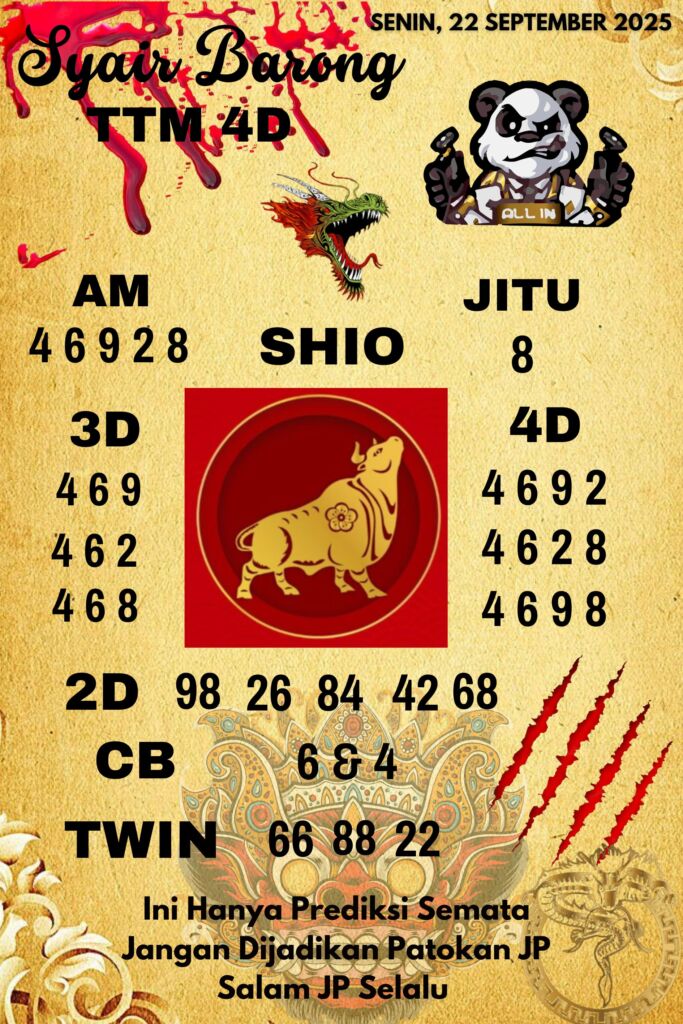 Prediksi DENSUSTOTO menyediakan Syair Togel Toto Macau resmi yang dapat anda saksikan dalam situs judi togel online ini. Setiap pemain judi togel online yang tidak memandang dan mengenal syair togel Toto Macau pastilah kurang mujur buat mendapati angka keluaran togel terjitu. Lantaran itu sekarang situs judi togel online DENSUS TOTO sekarang akan memberikan anda bocoran bagaimana caranya mendapati nomor keluaran prediksi Toto Macau dari syair togel sgp terjitu. Sekarang anda cuma perlu dan mengenal code syair Toto Macau ini merupakan prediksi Toto Macau yang dituang terdapat sifat code syair. Maka serius tidak bertanya-tanya jikalau sejumlah penggemar togel begitu menyintai prediksi syair togel ini. Buat prediksi syair Toto Macau dapat dipakai buat bahan ketidaksamaan mencari angka jitu yang bisa keluar pada hari ini. Karenanya berhati-hatilah selalu pada setiap terdapat dipicu di situ dapat anda angka bermain 2D, 3D dan 4D.